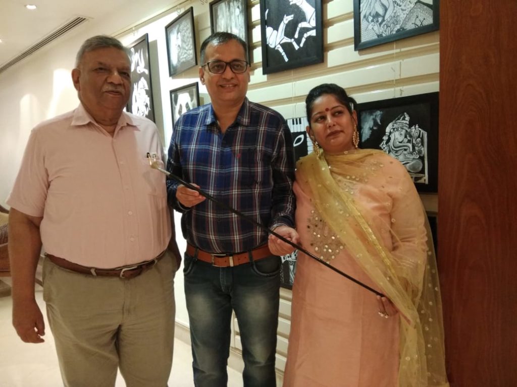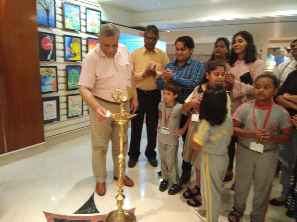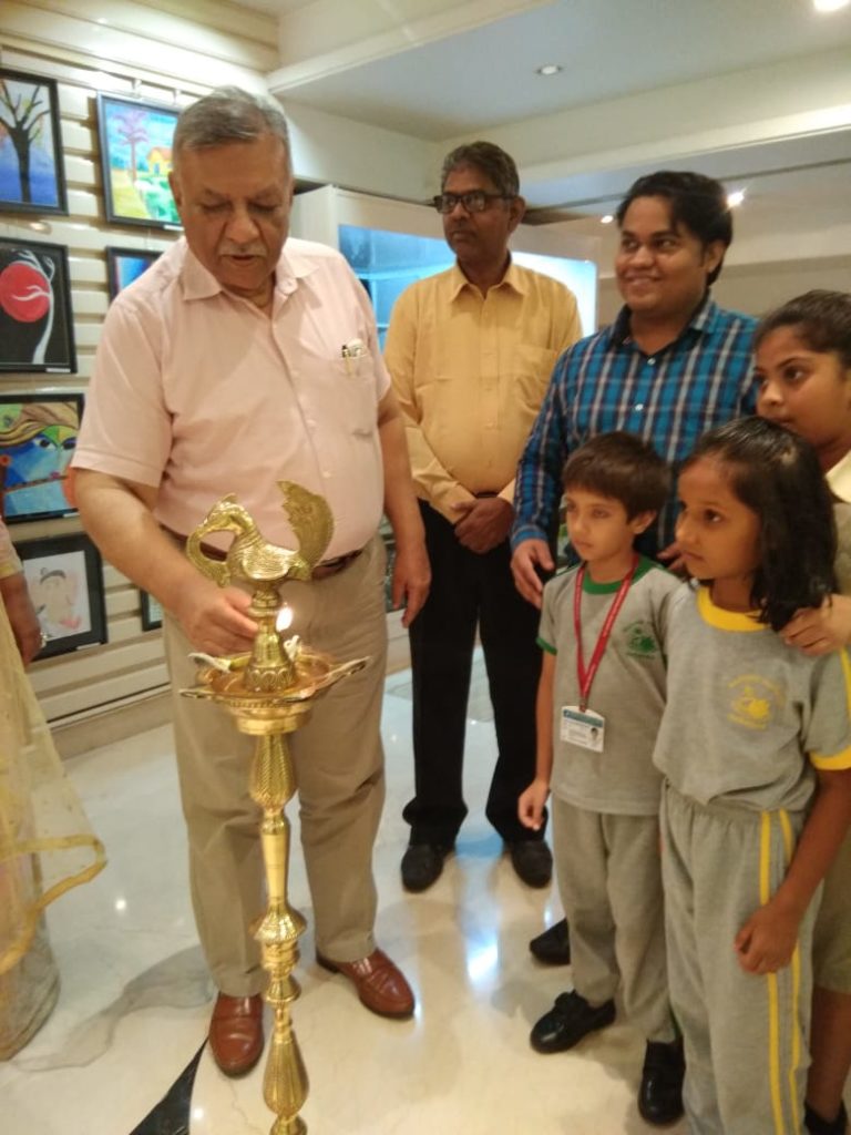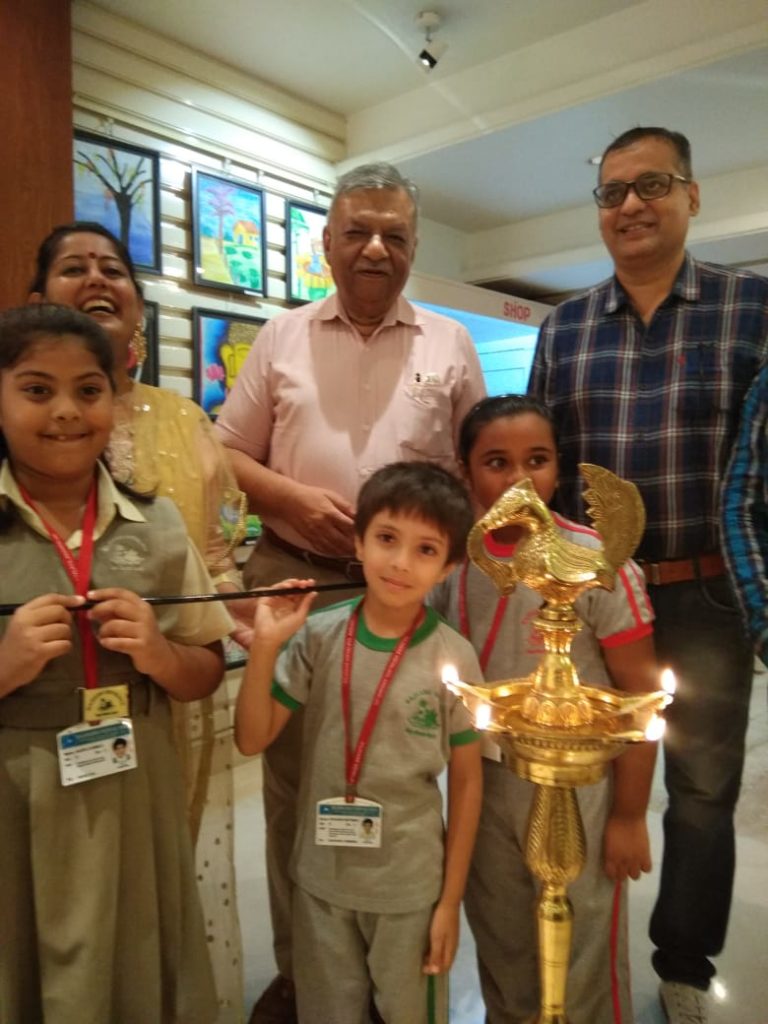 प्रदर्शनी का दीप प्रज्वलित कर उदघाटन करते मुख्य अतिथि के रूप में मौजूद कला प्रेमी और उधोगपति गुरु स्वरूप श्रीवास्तव