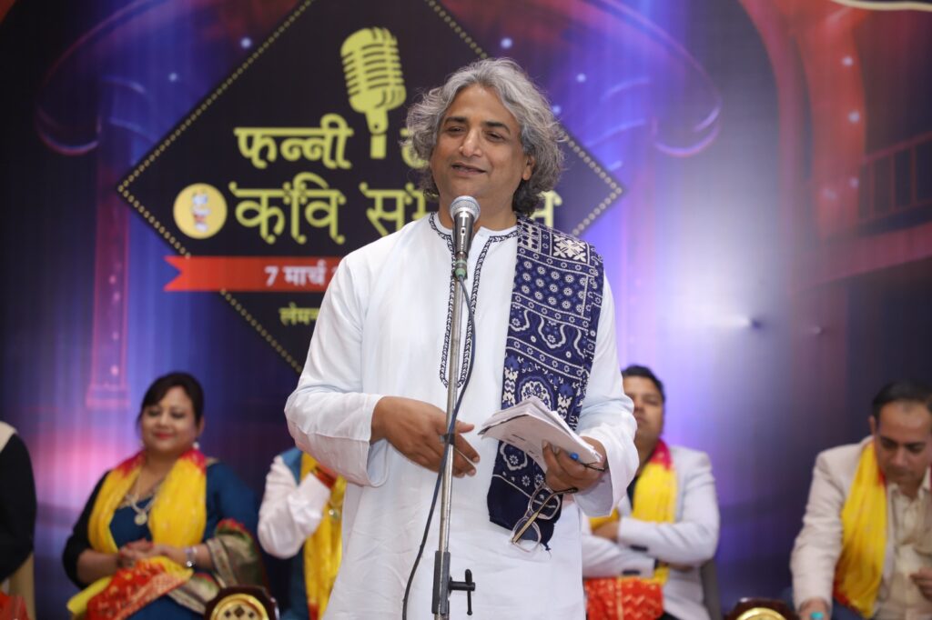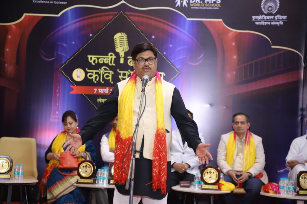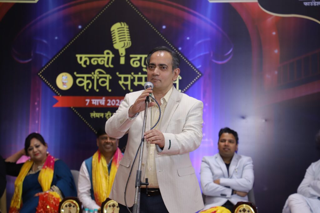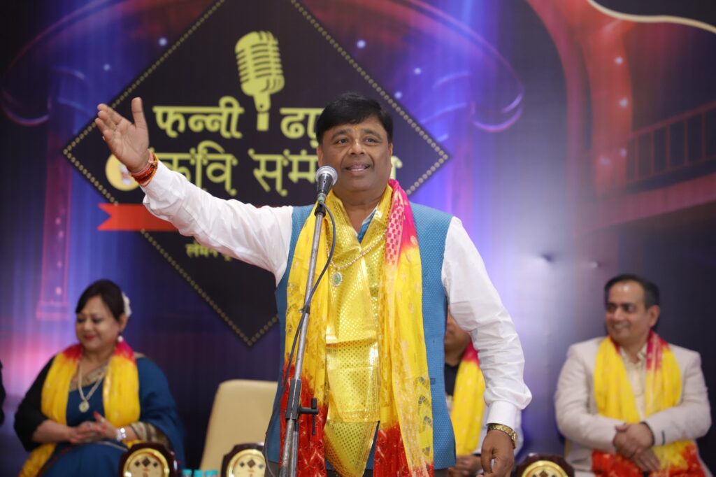 हास्य कवि पवन आगरी ने समसामयिक व्यंग्य से भरपूर अपनी रचना प्रस्तुत करते हुए श्रोताओं को खूब गुदगुदाया—