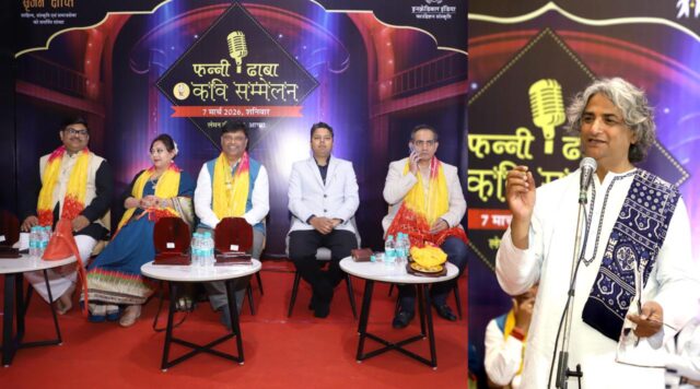 आगरा। इनक्रेडिबल इंडिया फाउंडेशन एवं सृजन दीप्ति के संयुक्त तत्वावधान में साहित्य और हास्य से सराबोर “फन्नी ढाबा कवि सम्मेलन”का भव्य आयोजन शनिवार को लेमन ट्री होटल में सम्पन्न हुआ। कार्यक्रम में शहर के साहित्य प्रेमियों ने बड़ी संख्या में भाग लेकर कवियों की रचनाओं का आनंद लिया।