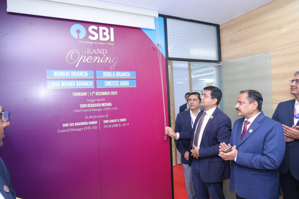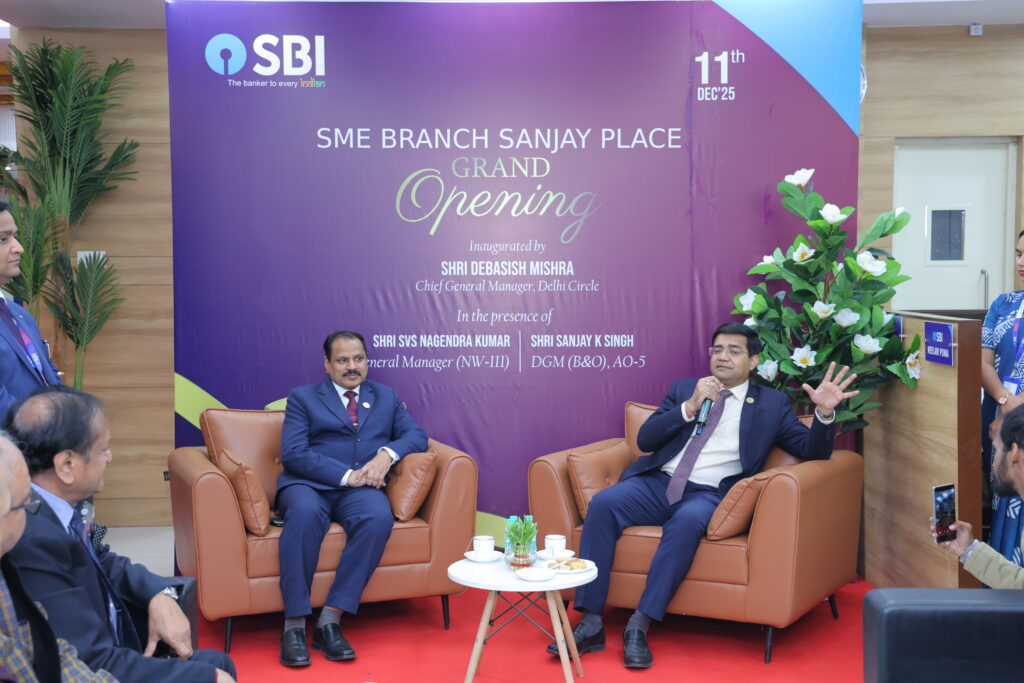 आगरा। भारतीय स्टेट बैंक (एसबीआई) ने MSME सेक्टर को और अधिक सशक्त बनाने की दिशा में महत्वपूर्ण कदम उठाते हुए संजय प्लेस स्थित पुनर्निर्मित एसएमई शाखा का शुभारंभ किया। शाखा भवन का उद्घाटन मुख्य अतिथि मुख्य महाप्रबंधक दिल्ली सर्किल देवाशीष मिश्रा ने घंटा बजाकर – शंख ध्वनि के साथ भगवान गणेश की प्रतिमा के समक्ष दीप प्रज्वलित कर किया।